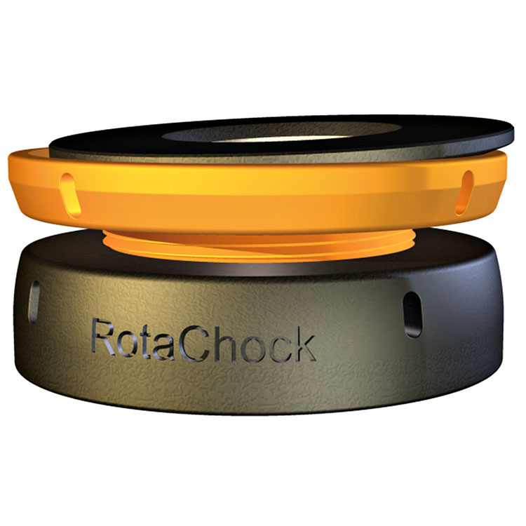- Optimoitu kontaktipinta – RotoChockin pallomainen laakeri ja korkeussäätömahdollisuus varmistavat, että kone pysyy aina tukevasti jalustalla.